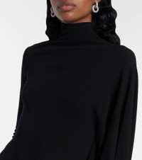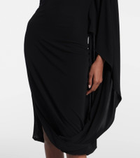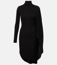This midi dress from Stella McCartney exudes elegance with its fitted, high-neck silhouette. The design features a charming asymmetric hem and draped sleeve detail, complemented by invisible zipper closure for a sleek finish. Product Details - Material: 100% viscose - Care instructions: dry clean - Made in Italy - Designer color name: Black - Item color: black - Closure: invisible zipper - Item number: P01052229 Size & Fit - True to size - Fitted - Stretchy fabric - The model seen in the picture is 178cm-5'10" and wearing a size IT 40