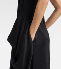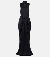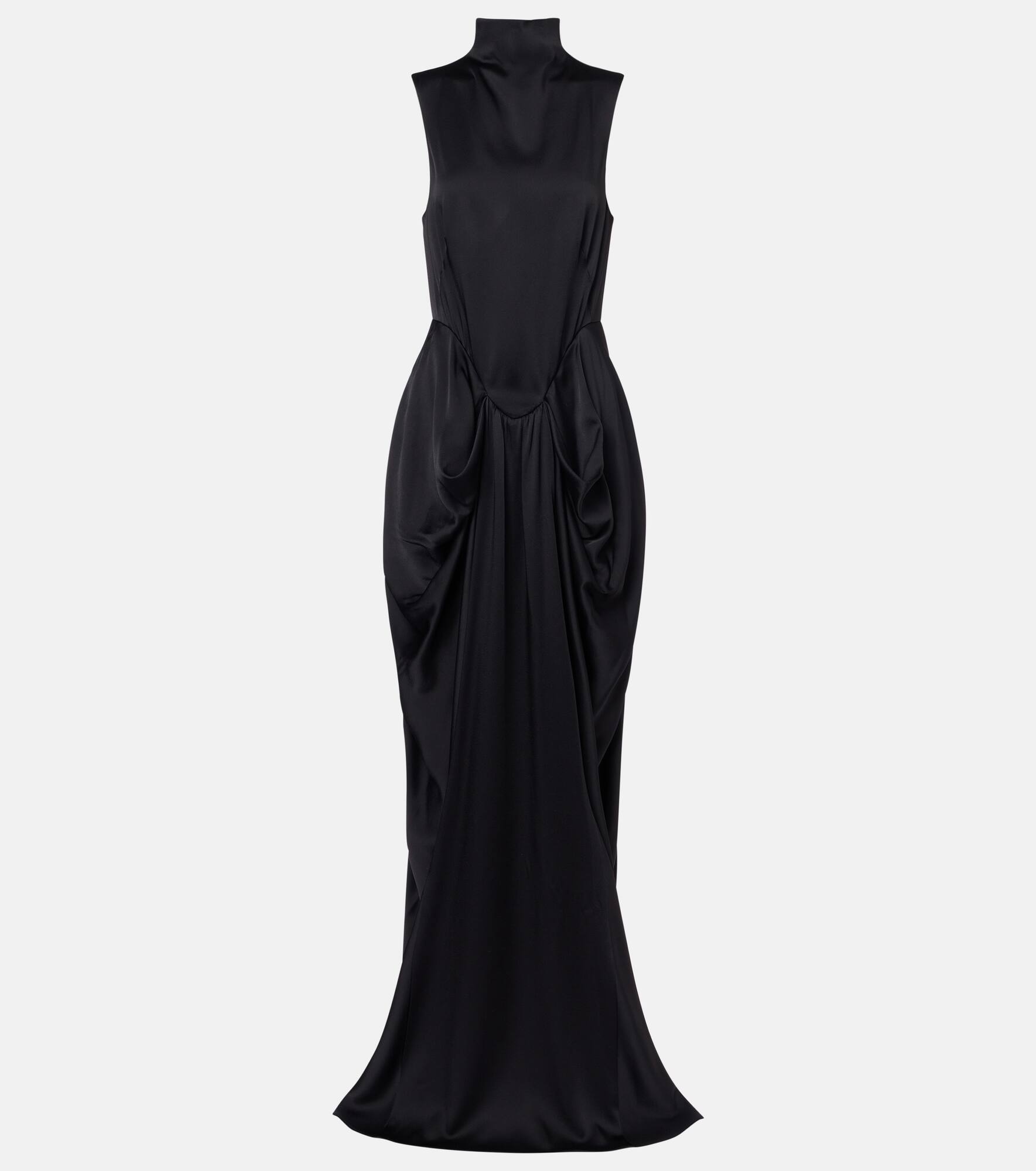 Made from lustrous satin, this gown from Stella McCartney ensures you make an impression during special occasions. Featuring a sculptural skirt with elegant draping, the sleeveless style is complete with a high neckline and side pockets. Product Details - Material: 73% acetate, 27% viscose - Care instructions: dry clean - Made in Hungary - Designer color name: Black - Item color: black - Closure: zipped back - Pockets: side slit pockets - Item number: P01052181 Size & Fit - True to size - Cinched waist - Non-stretchy fabric - The model seen in the picture is 178cm-5'10" and wearing a size IT 40