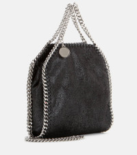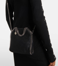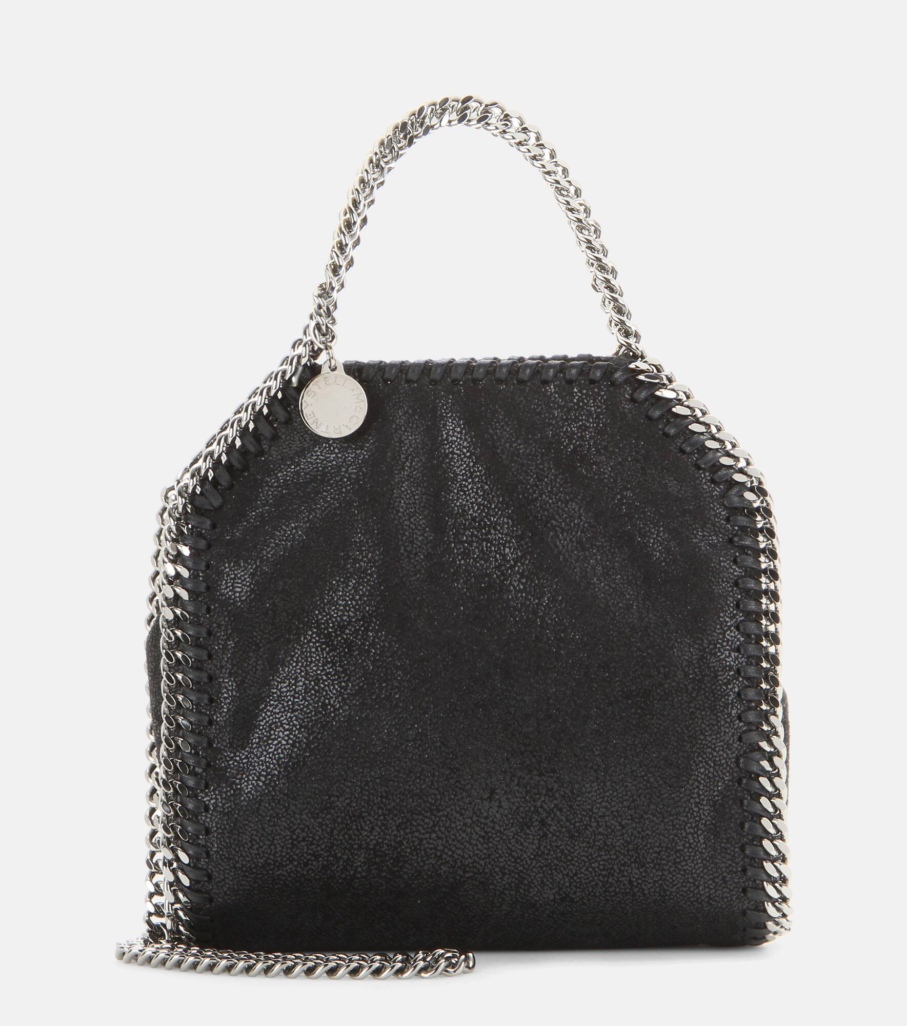 A sustainable style icon since 2010, Stella McCartney's Falabella shoulder bag is both a chic and environmentally conscious choice. Updated in black, this Tiny style is made from the British brand’s suede alternative, Shaggy Deer, which is soft to the touch but notable for its durability. It's trimmed with equally iconic hardware: whipstitched diamond-cut chains in a silver tone. Product Details - Closure: magnetic-tab fastening - Material: polyester - Designer color name: Black - Made in Italy - Trim: fabric - Color of chain strap: silver - Item number: P00337792 Size & Fit - Height 17,5cm-7" - Width 18cm-7" - Depth 6cm-2.5" - Chain length 106cm-41.5" - Suitable for large smartphones (e.g. iPhone 12 Pro Max / Samsung Galaxy A72, S21 Ultra/ Huawei P40 Pro, Mate 40 pro)