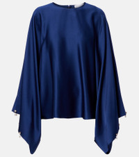 Lend an element of sophistication to your everyday wardrobe with this top from Stella McCartney. Crafted from lustrous satin, the long-sleeved style features faux pearl embellishments dangling from the cuffs. Product Details - Material: 73% acetate, 27% viscose - Care instructions: dry clean - Made in Romania - Color: blue - Designer color name: Navy - Closure: concealed zipped back - Item number: P01132591 Size & Fit - Fits large to size - we recommend trying one size smaller - Designed for a loose fit - Non-stretchy fabric - Falls below the hip - The model seen in the picture is 178cm-5'10" and wearing a size IT 38