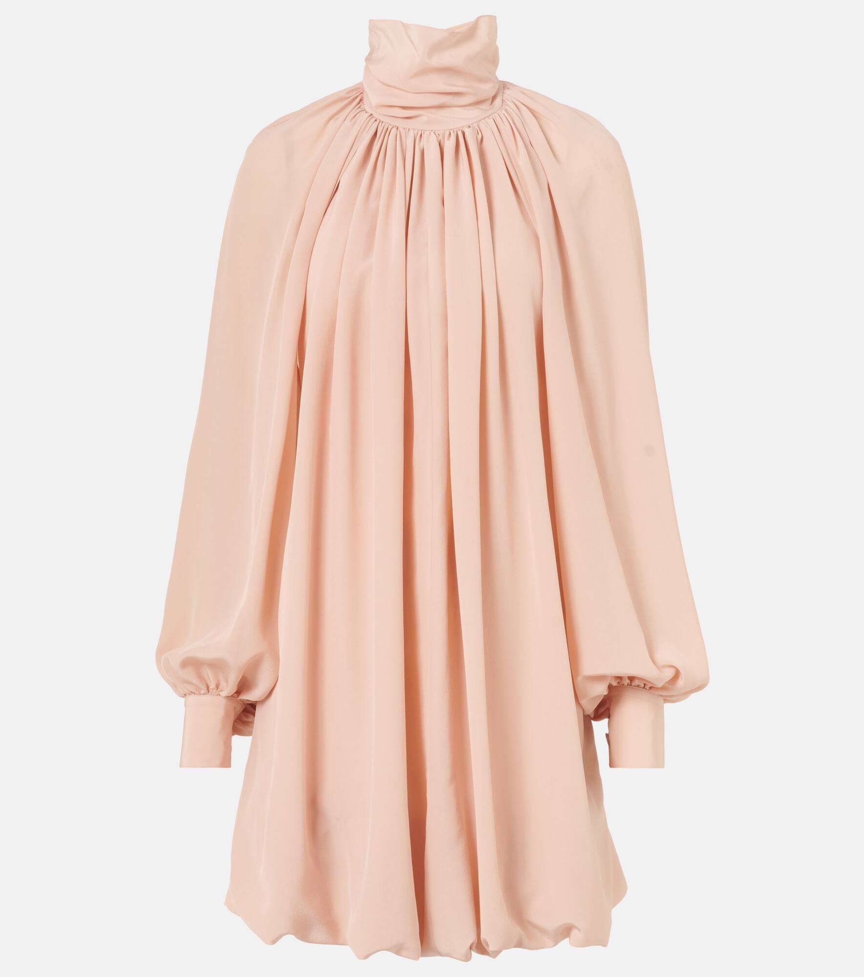Open-back gathered silk crepe de chine mini dress Pink