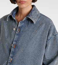 Oversized Rhinestone-Embellished Denim Shirt