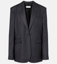 Rooted in her Savile Row training, Stella McCartney’s tailored styles are a timeless investment, like the Iconic blazer. With structured shoulder pads, peak lapels, and a single breasted silhouette, this sharp design is made from wool flannel. Product Details - Material: 100% wool - Care instructions: dry clean - Made in Bulgaria - Designer color name: Ash Grey - Item color: gray - Lining: 52% viscose, 48% cotton - Sleeve lining: 100% viscose - Closure: single-breasted (one button) - Peak lapel - Shoulder pads - Cuff: four buttons - Pockets: ticket pocket, flap pockets, internal pocket - Vent: single - Fully lined - Item number: P01052111 Size & Fit - Fits large to size - we recommend trying one size smaller - Shoulder pad inserts - Designed for a loose fit - Non-stretchy fabric - Falls below the hip - slit length 22cm-8.5" - The model seen in the picture is 178cm-5'10" and wearing a size IT 38