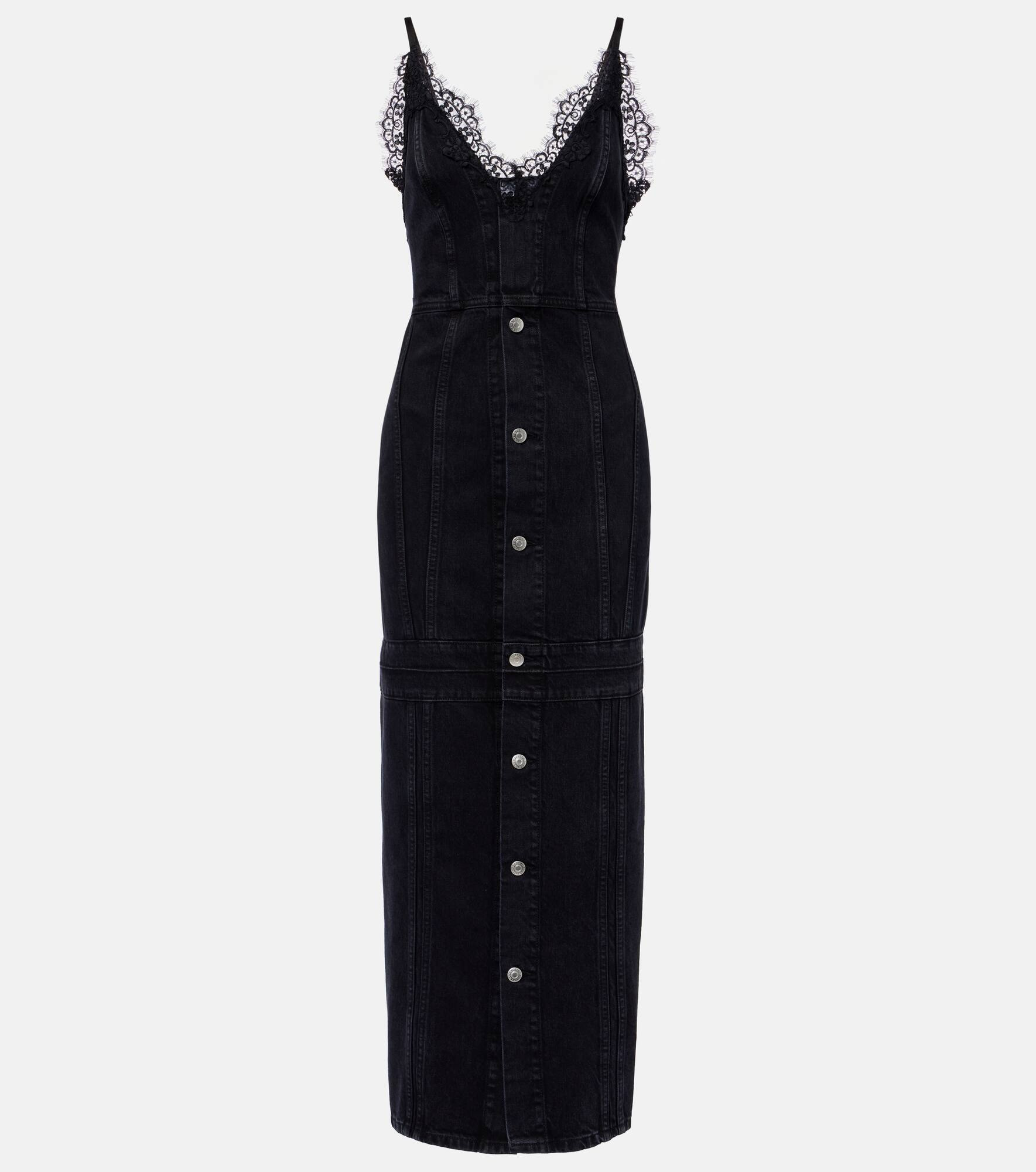 Lace-trimmed Paneled Organic Denim Midi Dress