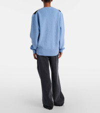 Oversized lace-trimmed ribbed wool sweater Sky blue