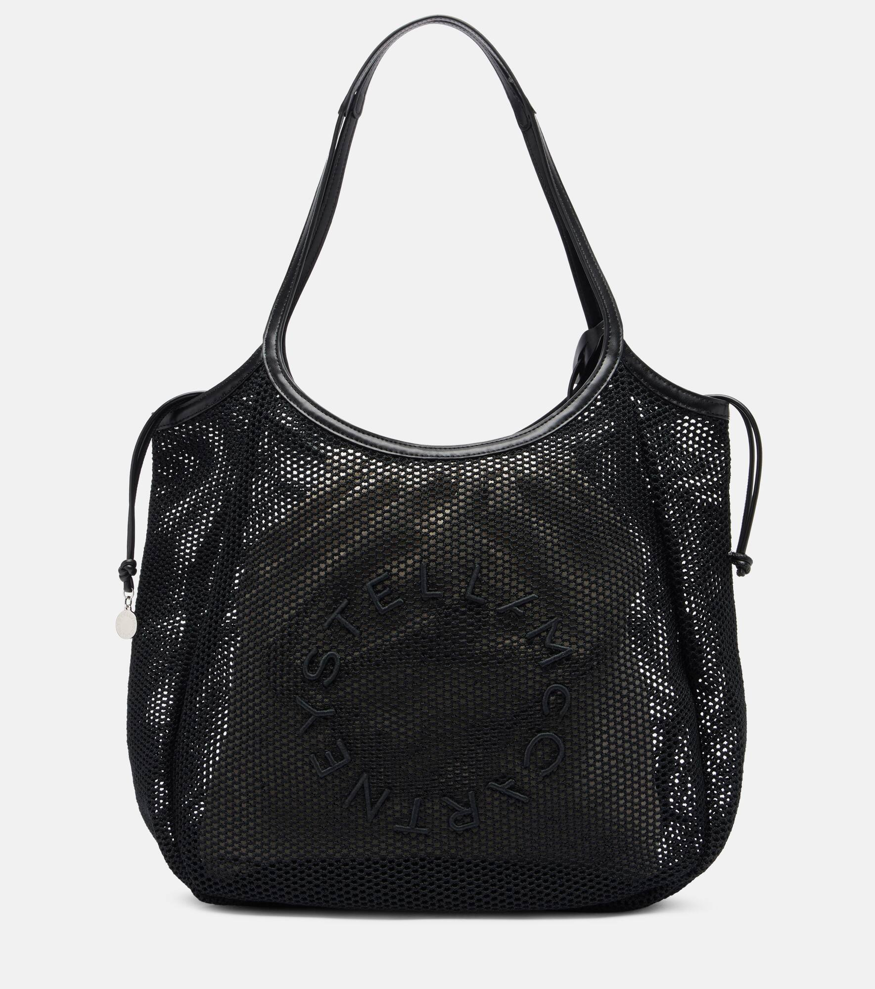 Carry the essentials and more in this tote bag from Stella McCartney. The design is crafted from mesh with a canvas interior, has faux leather trims, and is complete with the brand's unmistakable logo. Product Details - Material: fabric - Lining: fabric - Made in Italy - Designer color name: Black - Item color: black - Top handles - Internal details: single compartment - Closure: open top - Item number: P01046967 Size & Fit - Height 36cm-14" - Width 40cm-15.5" - Depth 12cm-4.5" - Length of handles 52cm-20.5"