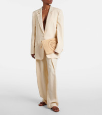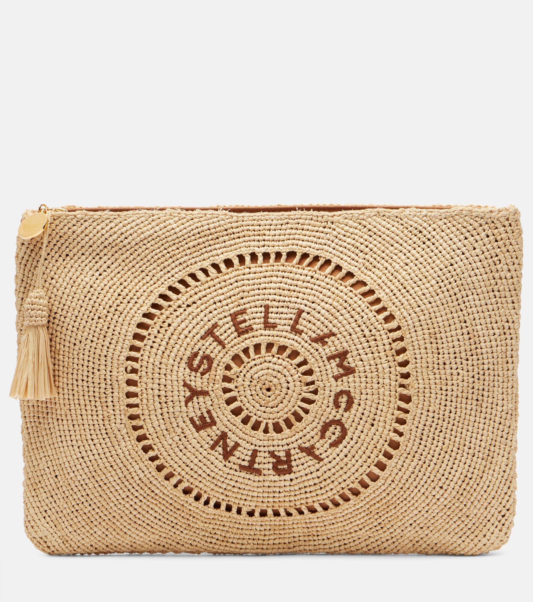 Crafted from raffia, this clutch from Stella McCartney is the perfect summer accessory. The design features the brand's embroidered logo at the front and a zipped top closure, finished with tassel and medallion details for a playful, signature touch. Product Details - Material: raffia - Lining: faux leather - Made in Madagascar - Designer color name: Natural/ Tan - Item color: beige - Closure: zipped top - Item number: P01046958 Size & Fit - Height 21cm-8.5" - Width 30cm-12"