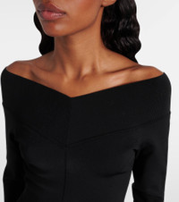 Stella McCartney’s pared-back approach to design has garnered a cult following among those who crave clean lines. This midi dress is made from jersey and features an off-shoulder neckline. Product Details - Material: 83% viscose, 17% polyester - Care instructions: dry clean - Made in Italy - Designer color name: Black - Item color: black - Trim: 63% viscose, 21% polyamide, 15% polyester, 1% elastane - Closure: zipped back - Short vent - Item number: P01052202 Size & Fit - True to size - Off-the-shoulder - Fitted - Stretchy fabric - slit length 29cm-11.5" - The model seen in the picture is 178cm-5'10" and wearing a size XS