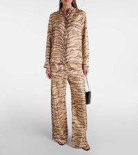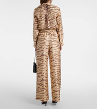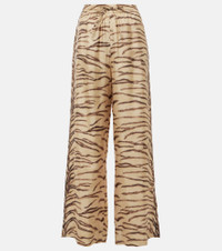 Printed high-rise silk wide-leg pants
