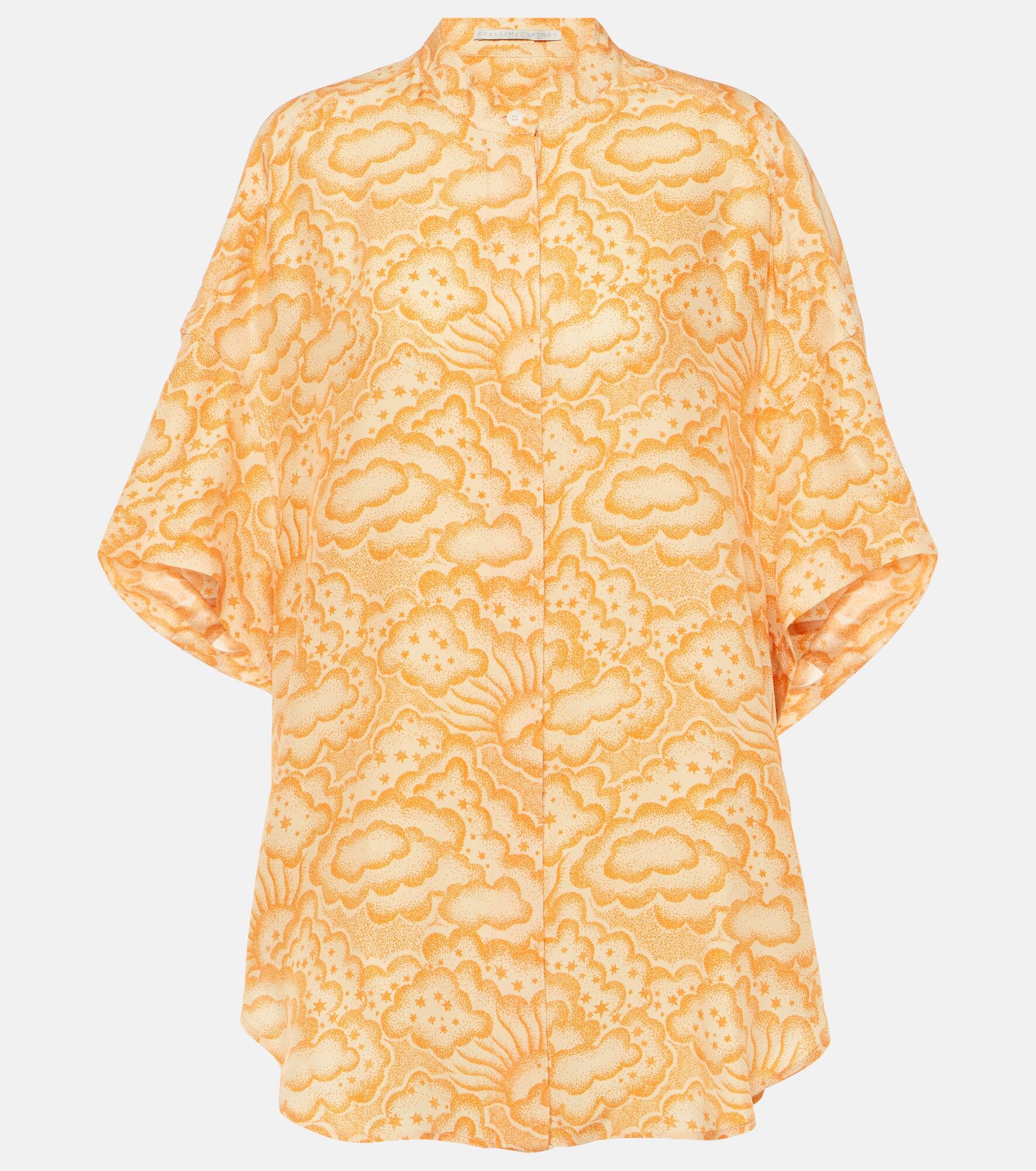 Product Details - Material: 100% silk - Care instructions: dry clean - Made in Romania - Designer color name: Multicolor Orange - Contains non-textile parts of animal origin - Closure: button-down - Item number: P00896976 Size & Fit - Fits large to size - we recommend trying one size smaller - Dropped shoulders - Oversized - Non-stretchy fabric - Falls below the hip - The model seen in the picture is 178cm-5'10" and wearing a size IT 38