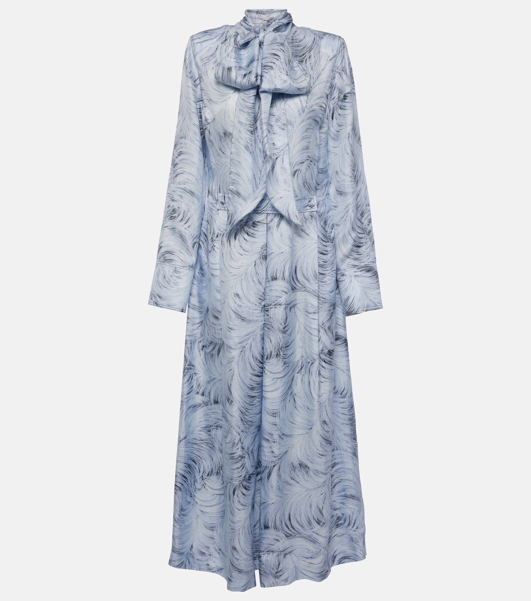 Product Details - Material: 100% silk - Care instructions: dry clean - Made in Italy - Designer color name: Cloudy Blue - Closure: partially buttoned front - Self-tie collar - Pockets: side slit pockets - Item number: P00952977 Size & Fit - True to size - Shoulder pad inserts - Cinched waist - Non-stretchy fabric - The model seen in the picture is 178cm-5'10" and wearing a size IT 40