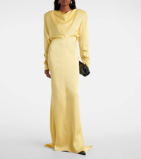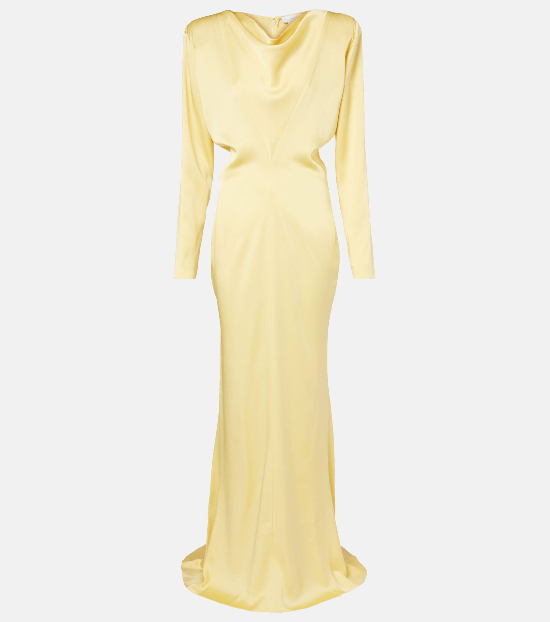 A consistently fresh aesthetic is underpinned by Stella McCartney’s attention to detail and dedicated approach to timeless fashion. Crafted from glossy satin, this gown is the ideal choice for your next event. Product Details - Material: 73% acetate, 27% viscose - Care instructions: dry clean - Made in Italy - Designer color name: Camomille - Item color: yellow - Closure: zipped back - Detachable shoulder pads - Hem: uneven - Unlined - Item number: P01086165 Size & Fit - True to size - Ideal fit for larger bust sizes - Oversized shoulders - Shoulder pad inserts - Close fit at the hips - Cinched waist - Non-stretchy fabric - The model seen in the picture is 178cm-5'10" and wearing a size IT 40