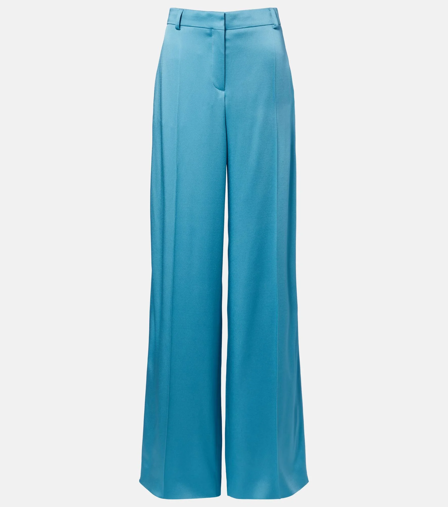 Rooted in her Savile Row training, Stella McCartney’s tailored styles are a timeless investment. These wide-leg pants are crafted from lustrous satin and shaped into a wide-leg silhouette that's slightly dropped at the waist. Product Details - Material: 73% acetate, 27% viscose - Care instructions: dry clean - Made in Hungary - Color: turquoise - Designer color name: Steel Blue - Item color: blue - Contains non-textile parts of animal origin - Closure: zip, hook, and button fastening - Pockets: slant pockets, back pocket - Belt loops - Item number: P01132545 Size & Fit - Fits large to size - we recommend trying one size smaller - Non-stretchy fabric - Wide-leg - The model seen in the picture is 178cm-5'10" and wearing a size IT 38
