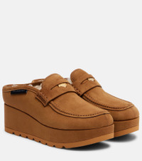 Slip into comfort with the Sneak-Elyse wedge mules from Stella McCartney. Meticulously crafted from faux suede and lined with cozy teddy fleece, this loafer-inspired pair features penny straps and logo tags on the sides. Product Details - Upper: fabric - Lining: fabric - Sole: fabric insole, rubber sole - Toe shape: round toe - Made in Italy - Includes: shoe box - Designer color name: Pecan - Item color: beige - Item number: P01078823 Size & Fit - True to size - European sizes - 4cm-1.5" platform (size EU 38) - 6cm-2.5" wedge heel (size EU 38)