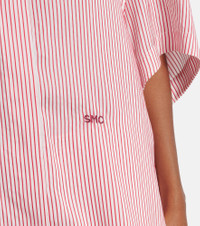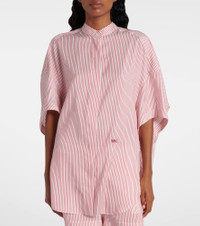 Crafted from silk, this Stella McCartney airy striped shirt is a timeless wardrobe investment. This piece features a concealed buttoned front and is detailed with a subtle brand's signature embroidery. Product Details - Material: 100% silk - Care instructions: dry clean - Made in Romania - Designer color name: White/Red - Item color: white, red - Contains non-textile parts of animal origin - Closure: concealed buttoned front - Item number: P01046691 Size & Fit - True to size - Dropped shoulders - Designed for a loose fit - Non-stretchy fabric - Falls below the hip - The model seen in the picture is 178cm-5'10" and wearing a size IT 40