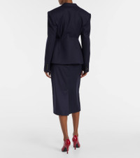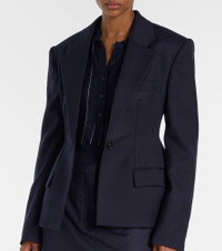 Rooted in her Savile Row training, Stella McCartney’s tailored styles are a timeless investment. Made from pure wool, this sculptural blazer is complete with notched lapels and shoulder pads that accentuate the shoulders. Product Details - Material: 100% wool - Care instructions: dry clean - Handmade in Hungary - Designer color name: Navy - Item color: blue - Lining: 52% viscose, 48% cotton - Closure: single-breasted - Shoulder pads - Pockets: welt pocket, flap pockets - Notched lapel - Item number: P01052124 Size & Fit - True to size - Oversized shoulders - Shoulder pad inserts - Cinched waist - Non-stretchy fabric - Falls below the hip - The model seen in the picture is 178cm-5'10" and wearing a size IT 40