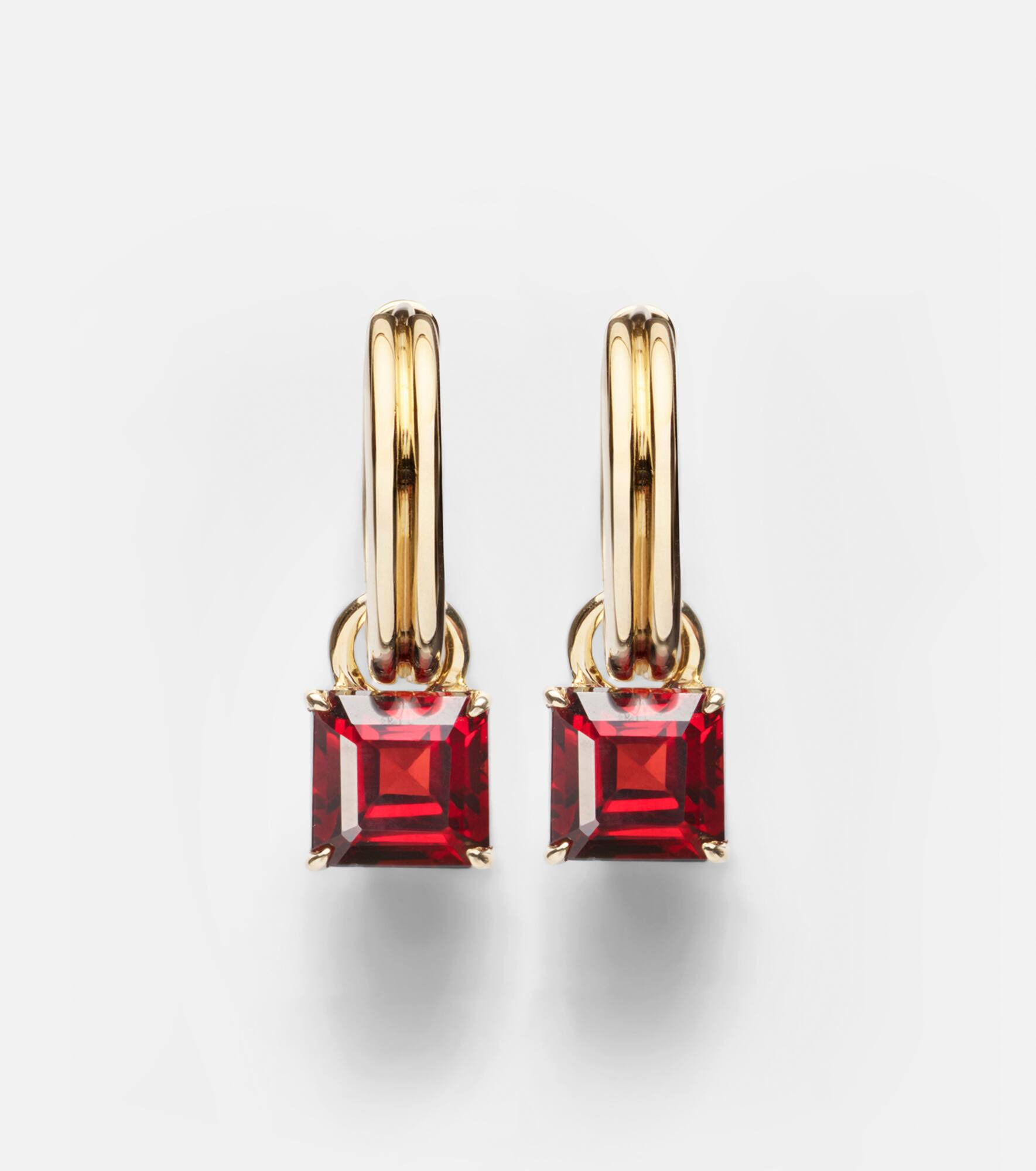 Designed to be worn throughout all of life's seasons, Stone and Strand's fine jewelry transcends the confines of special occasions. This pair of earrings is crafted from 10kt yellow gold and features 2.87ctw of garnets. Product Details - Material: 10kt yellow gold - Made in the USA - Item color: gold - Stone I: garnet, 2.87ctw - Item number: P01071811 Size & Fit - Length 20mm-0.8" - Max. width 6mm-0.25" - Inner diameter 10mm-0.4"