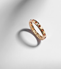 Stone and Strand offers fine jewelry designed in New York that brings a fresh perspective to everyday style. This ring is crafted from 10kt yellow gold and features 0.24ctw of garnet. Product Details - Material: 10kt yellow gold - Made in the USA - Item color: gold, red - Stone I: garnet, bezel setting, 0.24ctw - Item number: P01071809 Size & Fit - Width 3mm-0.1"