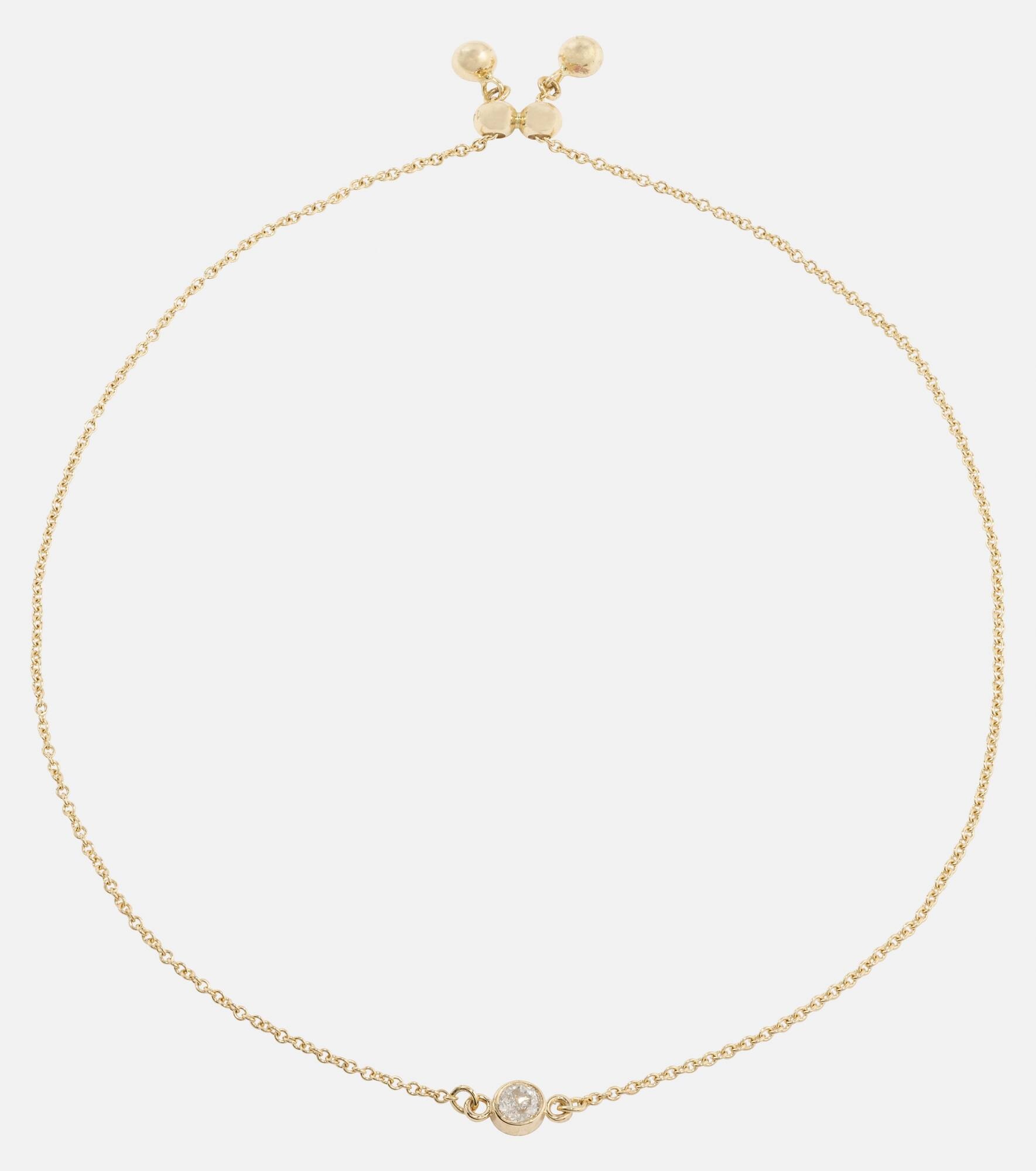 Product Details - Material: 14kt yellow gold - Made in the USA - Stone I: white diamonds - Stone I carat weight (ct): 0.1 - Item number: P00882231 Size & Fit - Adjustable length - Max. width 2mm-0.1" - Circumference 21cm-8.5"