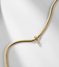 Stone and Strand is the atelier behind handmade fine jewelry that captures the vibrant energy of New York City. The Serpentine necklace is made with 14kt yellow gold and adorned with a 0.25ct diamond. Product Details - Material: 14kt yellow gold - Made in India - Item color: gold - Stone II: diamonds, 0.25ct - Item number: P01071788 Size & Fit - Length when open 43cm-17" - Width 3mm-0.1" - Pendant length 12mm-0.45" - Pendant width 4mm-0.15"