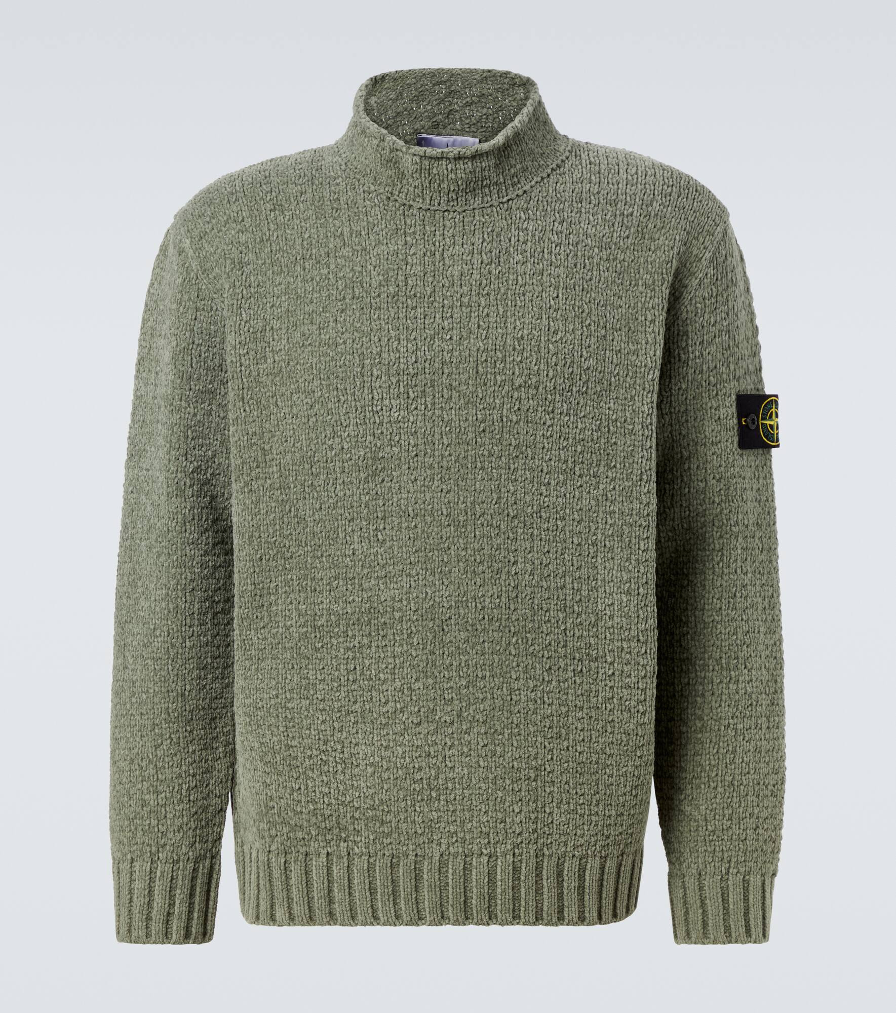 Crafted from pure cotton chenille, this sweater features a mock neck silhouette with reverse stitch details. The design is complete with the Compass badge on the sleeve, a symbol of Stone Island's love for the sea and dedication to innovation. Product Details - Material: 100% cotton - Care instructions: hand wash - Made in Italy - Designer color name: Sage - Item color: green - Collar: mockneck - Cuff: ribbed, elasticated - Hem: ribbed, elasticated - Item number: P01064113 Size & Fit - True to size - Straight fit - Stretchy fabric - Falls to the hip - Height of model is 188cm-74" and wears a size L