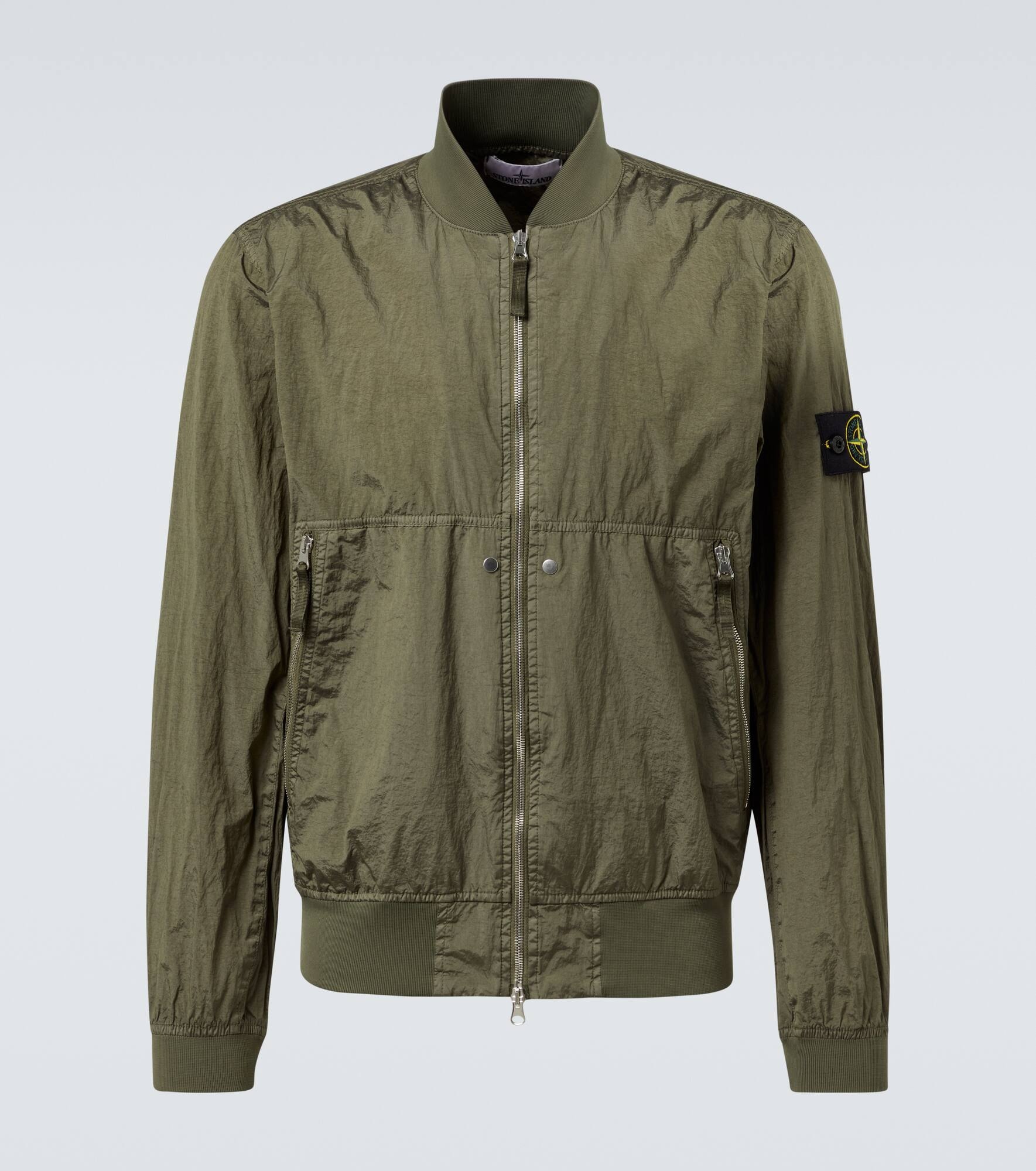 Navigate everyday dressing with this bomber jacket from Stone Island. Made from nylon, the style is completed with a two-way zipper and ribbed trims. This piece features the Compass badge on the sleeve, a symbol of the brand's love for the sea and dedication to innovation. Product Details - Material: 100% polyamide - Care instructions: machine wash at 30 degrees - Made in Indonesia - Designer color name: Military Green - Item color: green - Coating: 100% polyurethane - Material II: 98% polyamide, 2% elastane - Closure: two-way zipped front - Pockets: zipped pockets - Item number: P01011030 Size & Fit - True to size - Straight fit - Elasticated hem - Non-stretchy fabric - Slightly cropped - Height of model is 190cm-75" and wears a size L