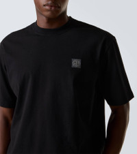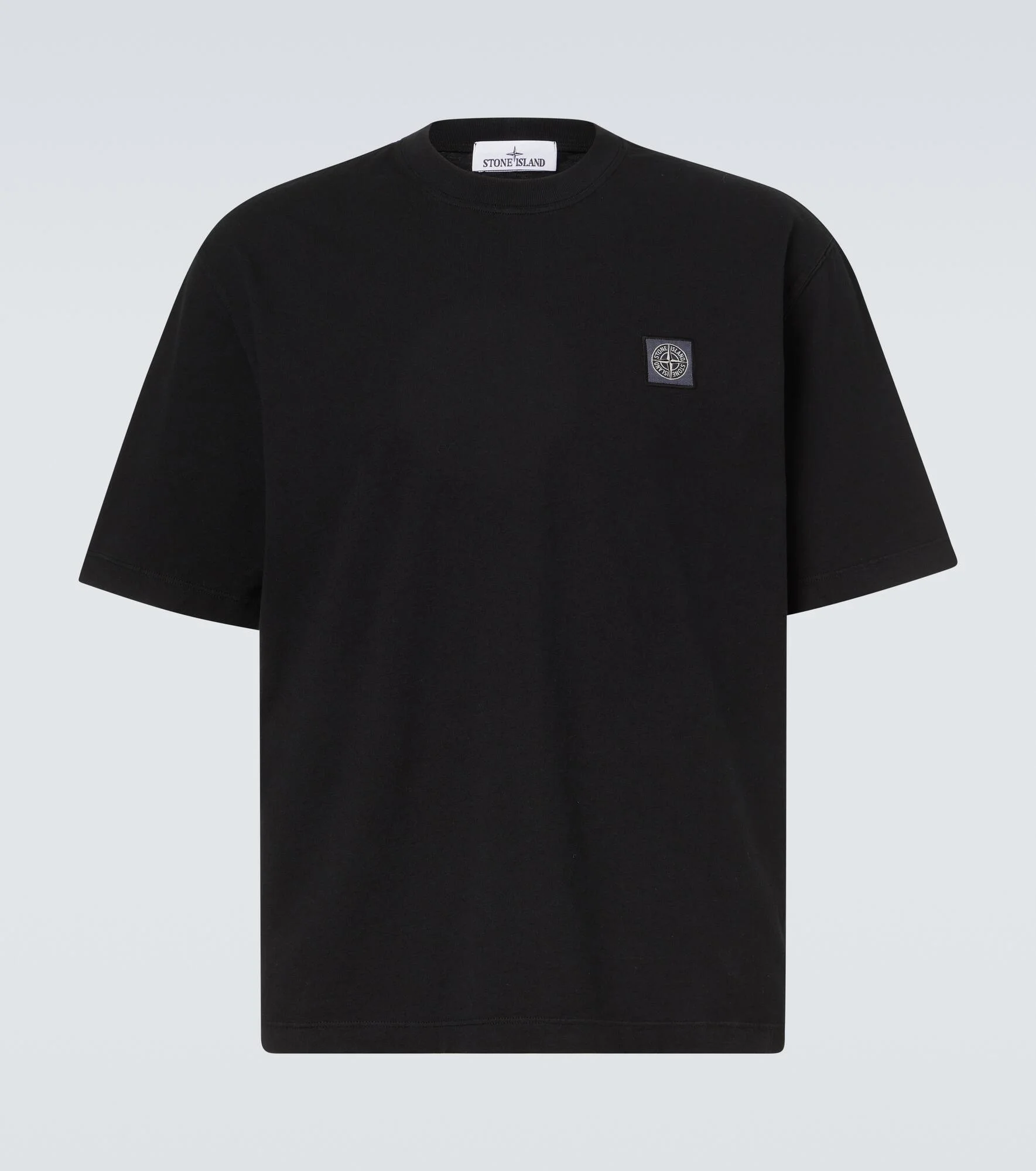 This Stone Island T-shirt is crafted from pure cotton jersey, offering effortless layering and all-day comfort. The design features the Compass badge, a symbol of the brand's love for the sea and dedication to innovation. Product Details - Material: 100% cotton - Care instructions: machine wash at 30 degrees - Made in Tunisia - Designer color name: Black - Item color: black - Trim: 94% cotton, 6% elastane - Collar: crewneck - Item number: P01064042 Size & Fit - True to size - Designed for a loose fit - Slightly stretchy fabric - Falls to the hip - Height of model is 189cm-74.5" and wears a size L