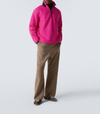Somewhere in between technical outerwear, grime, and football culture, Stone Island sits comfortably. The pink Marina half-zip sweater is made from an insulating wool-blend fleece. Product Details - Material: 70% wool, 30% polyester - Care instructions: dry clean - Made in Italy - Designer color name: Pink - Item color: pink, black - Material II: 100% polyamide - Material III: 100% polyurethane - Lining: 100% polyester - Closure: partially zipped front - Concealed hood - Cuff: elasticated - Pockets: rounded chest pocket - Drawstring at the hem for adjustable fit - Item number: P01064017 Size & Fit - True to size - Straight fit - Adjustable hem - Non-stretchy fabric - Falls to the hip - The model in the picture is 185cm-6'1" and wearing a size L