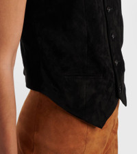Stouls' supple and stretchy leather is a signature material that's celebrated for its premium quality and machine-washable properties. Made in Portugal from black suede, the Capone vest features a classic buttoned front and a V-neckline. Product Details - Material: 100% lamb leather (suede) - Care instructions: machine wash at 30 degrees - Made in Portugal - Designer color name: Black - Item color: black - Lining: 97% cotton, 2.4% lyocell, 0.6% elastane - Lining II: 55% viscose, 45% polyester - Collar: V-neck - Closure: buttoned front - Pockets: jetted - Includes: dust bag - Item number: P01073597 Size & Fit - True to size - Cinched waist - Slightly stretchy fabric - Slightly cropped - The model seen in the picture is 178cm-5'10" and wearing a size XS