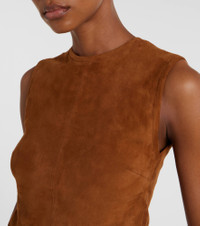 Finish looks on a polished note with the Miuccia top from Stouls. The design is crafted from supple suede and boasts a sleeveless silhouette. Pair yours with the matching Alfi jacket. Product Details - Material: 100% lamb leather (suede) - Care instructions: specialist clean - Made in Portugal - Designer color name: Coyotte - Item color: beige - Lining: 97% cotton, 2.4% lyocell, 0.6% elastane - Closure: hook-fastening back - Includes: dust bag - Item number: P01073550 Size & Fit - True to size - Cinched waist - Slightly stretchy fabric - Falls to the hip - The model seen in the picture is 178cm-5'10" and wearing a size XS