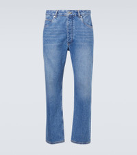 In collaboration with Aaron Levine, the British Studio Nicholson continues to reimagine everyday classics as modern essentials in their Module capsule collection. The Windslow straight-leg jeans feature a five-pocket design with a single front crease. Product Details - Material: 100% cotton - Care instructions: dry clean - Made in Turkey - Designer color name: Indigo Cowboy - Item color: blue - Details: 100% leather - Contains non-textile parts of animal origin - Closure: concealed buttoned front - Pockets: five pockets - Belt loops - Item number: P01120540