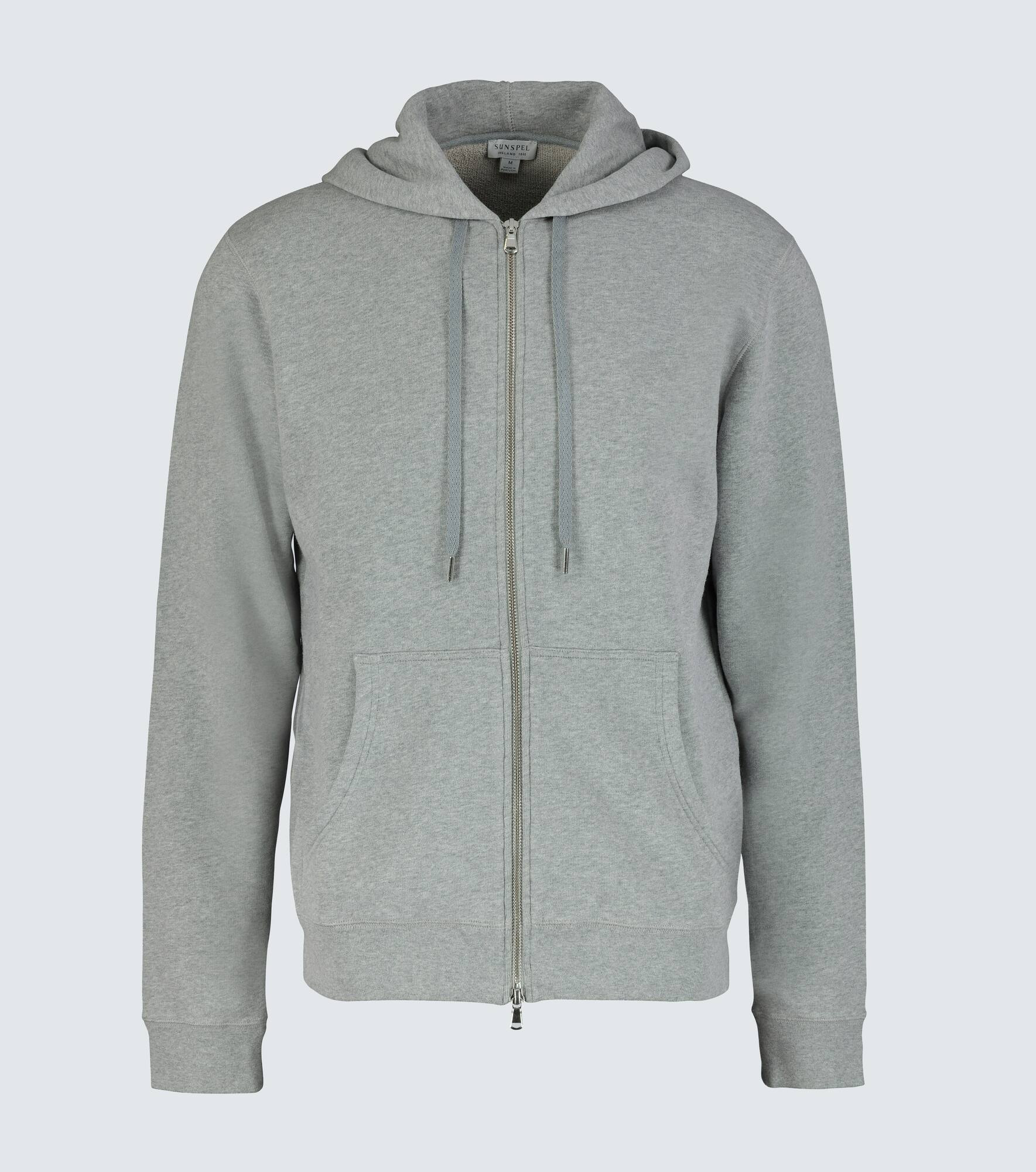 This grey marl hooded sweatshirt from Sunspel is cut from classic cotton-jersey with a soft brushed exterior and loopback reverse. Product Details - Drawstring hood - Care instructions: machine wash at 30 degrees - Pockets: side slit pockets - Designer color name: Grey Melange - Closure: two-way zipped front - Made in Portugal - Material: 100% cotton - Item number: P00444178 Size & Fit - True to size - Designed for a loose fit - Slightly stretchy fabric - Falls to the hip - The model in the picture is 185cm-6'1" and wearing a size M