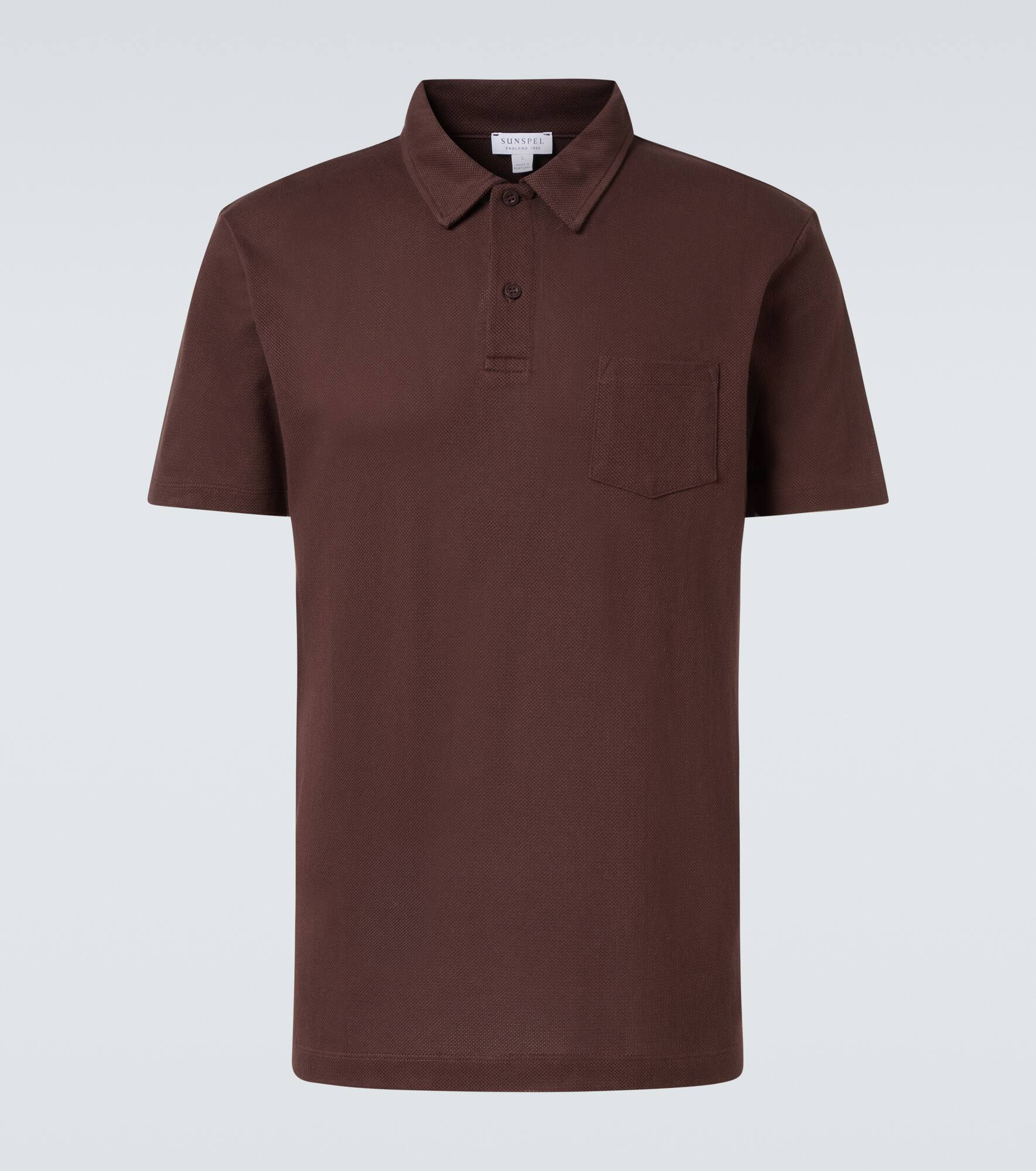 Founded in 1860, Sunspel is a British brand with a proven track record for producing timeless essentials. Crafted from cotton, this polo shirt features a classic fit with a patch pocket at the chest. Product Details - Material: 100% cotton - Care instructions: machine wash at 30 degrees - Made in Portugal - Designer color name: Bakelite - Item color: brown - Closure: partially buttoned front - Collar: polo collar - Side slits - Item number: P01080293 Size & Fit - True to size - Designed for a loose fit - Slightly stretchy fabric - Falls below the hip - Height of model is 192cm-75.5" and wears a size L