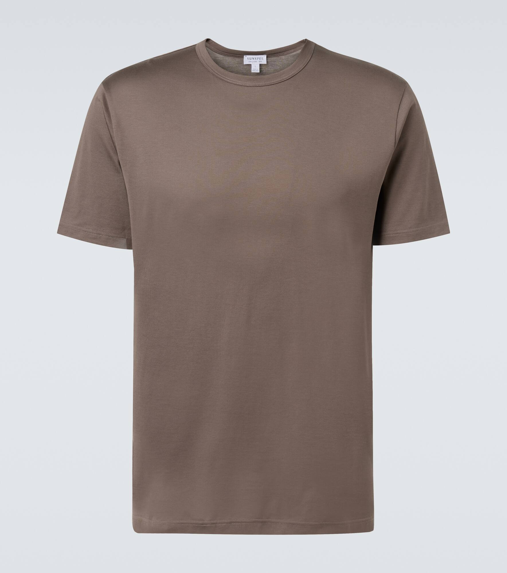 Founded in 1860, Sunspel made some of the first T-shirts in history and now specializes in timeless everyday clothing. Crafted from lightweight and durable cotton, this T-shirt is cut to a fitted silhouette. Product Details - Material: 100% cotton - Care instructions: machine wash at 30 degrees - Made in the UK - Designer color name: Walnut - Item color: brown - Item number: P01061520 Size & Fit - True to size - Straight fit - Slightly stretchy fabric - Falls to the hip - Height of model is 189cm-74.5" and wears a size L