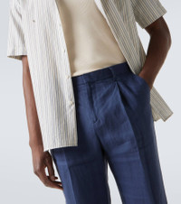 Founded in 1860, Sunspel is a British brand with a proven track record for producing timeless essentials. Crafted from lightweight linen, these straight pants feature a relaxed fit with front pleats and a tailored waistband. Product Details - Material: 100% linen - Care instructions: dry clean - Made in Portugal - Designer color name: Light Navy - Item color: blue - Lining: 100% cotton - Closure: zip and button fastening - Single pleat - Item number: P01061525 Size & Fit - True to size - Non-stretchy fabric - Slim-leg - Unhemmed for tailoring - Height of model is 189cm-74.5" and wears a size 32