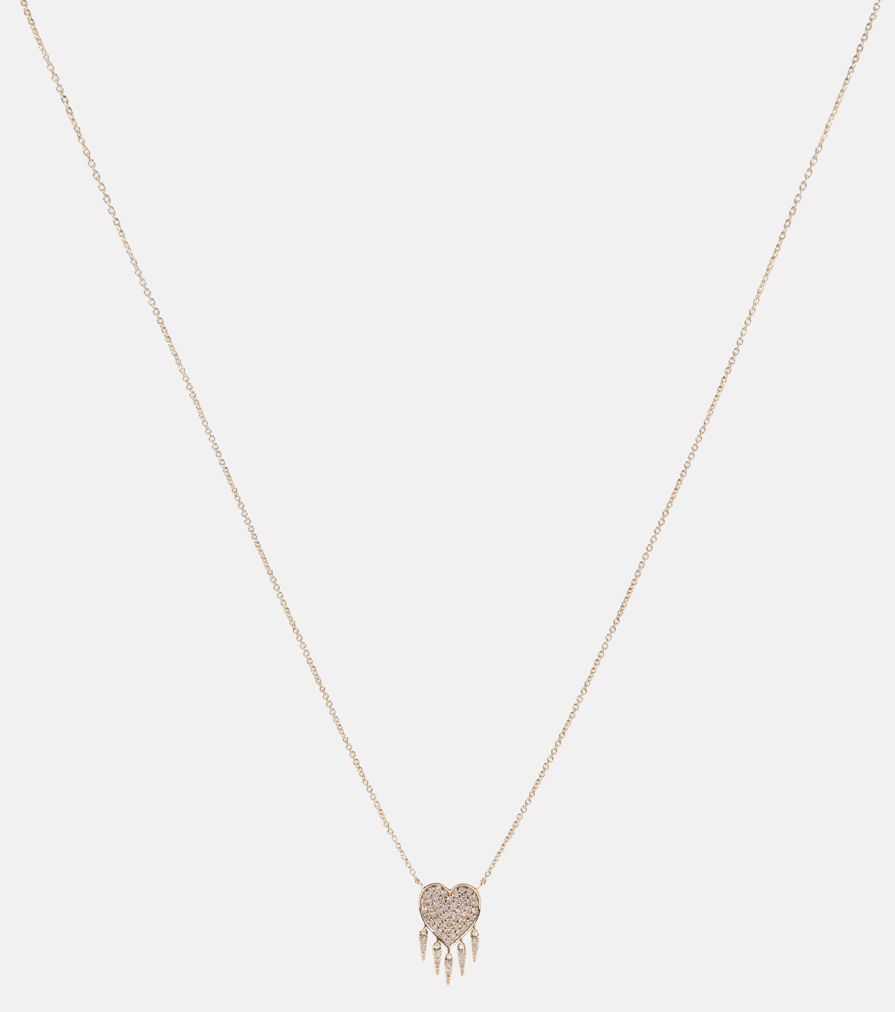 Meaningful elements are at the core of Sydney Evan's fine jewelry, ensuring each piece feels so special. This dainty chain necklace is set in 14kt gold and is strung with a fringed heart-shaped pendant paved with 56 brilliant round diamonds. Product Details - Material: 14kt yellow gold - Made in Hong Kong - Stone I: diamonds, round-cut, pavé setting - Closure: lobster-clasp fastening - Designer color name: Yellow Gold - Item number: P00796924 Size & Fit - Adjustable length - Width 1mm-0.05" - Pendant length 15mm-0.6" - Pendant width 10mm-0.4" - Min. length 40cm-15.5" - Max. length 45cm-17.5"