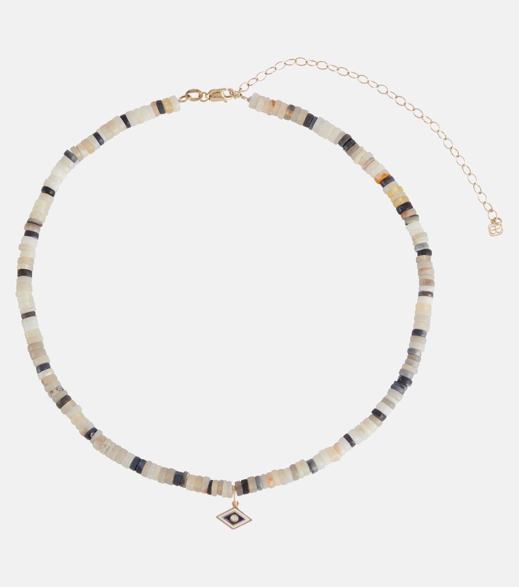 All-seeing-eye motifs are a common thread in Sydney Evan's designs – here, the unique motif brings a beguiling quality to a multicolored bead choker. This style features a 14kt gold charm bearing a single diamond. Product Details - Material: 14kt yellow gold - Made in Hong Kong - Stone I: diamond - Closure: lobster-clasp fastening - Designer color name: Australian Opal - Item number: P00629768 Size & Fit - Adjustable length - Length when open 38cm-15" - Width 3mm-0.1" - Pendant length 9mm-0.35" - Pendant width 8mm-0.3"