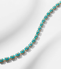 Made from 14kt gold, Sydney Evan's whimsical designs present a playful take on fine jewelry. The Eternity bracelet is adorned with 26 5.38ct turquoise stones and 26 0.18ct diamonds. Product Details - Material: 14kt yellow gold - Made in Thailand - Item color: gold - Stone I: 26 turquoises, 5.83ct - Stone II: 26 diamonds, 0.18ct - Item number: P01057444 Size & Fit - Length when open 17cm-6.5" - Max. width 3mm-0.1"