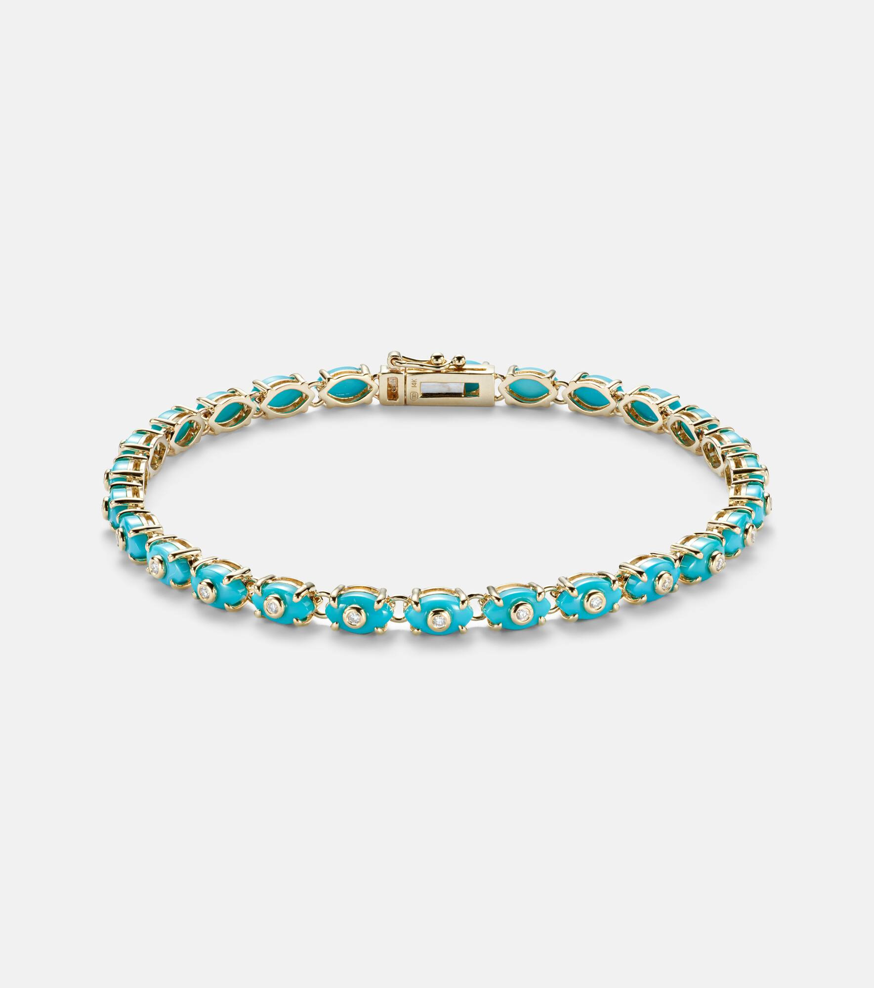 Eternity 14kt gold bracelet with turquoise and diamonds