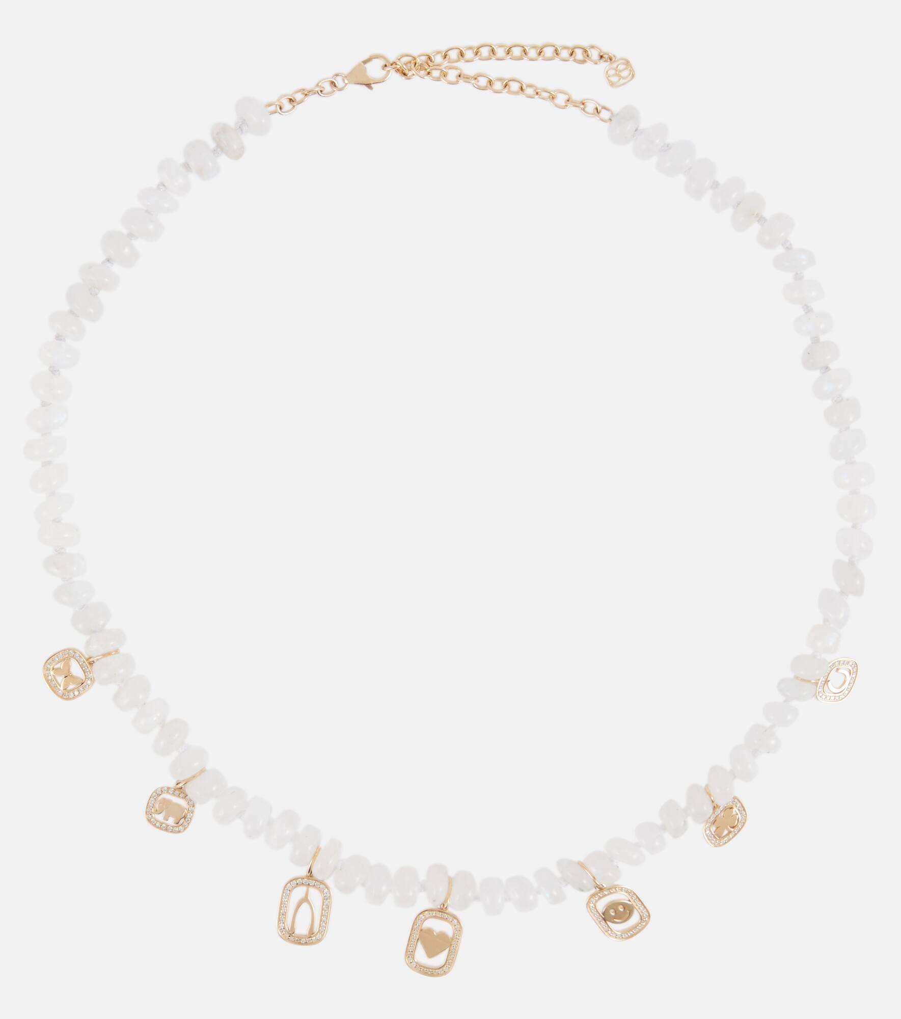 Multi-charm 14kt gold necklace with moonstone and diamonds