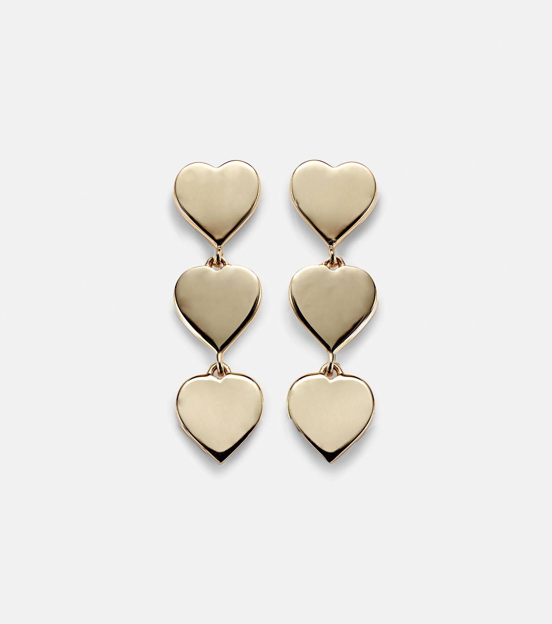 Pure Three Heart Linear 14kt gold earrings