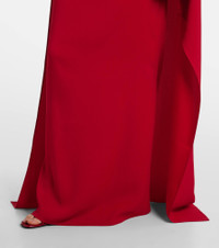 Taller Marmo's glamorous designs are exclusively made in Italy by experienced artisans. Crafted from luxurious crepe cady, the Carrington gown is shaped with a high neck, elegantly draped cape, and a center-back slit for ease of movement. Product Details - Material: 74% acetate, 22% viscose, 4% elastane - Care instructions: dry clean - Made in Italy - Designer color name: Ruby - Item color: red - Material II: 78% acetate, 22% elastane - Sleeves: long-sleeved - Closure: buttoned back - Long vent - Item number: P01104055 Size & Fit - Fits large to size - we recommend trying one size smaller - Fitted - Loose outer layer - Slightly stretchy fabric - The model seen in the picture is 178cm-5'10" and wearing a size IT 38