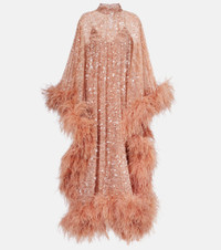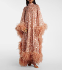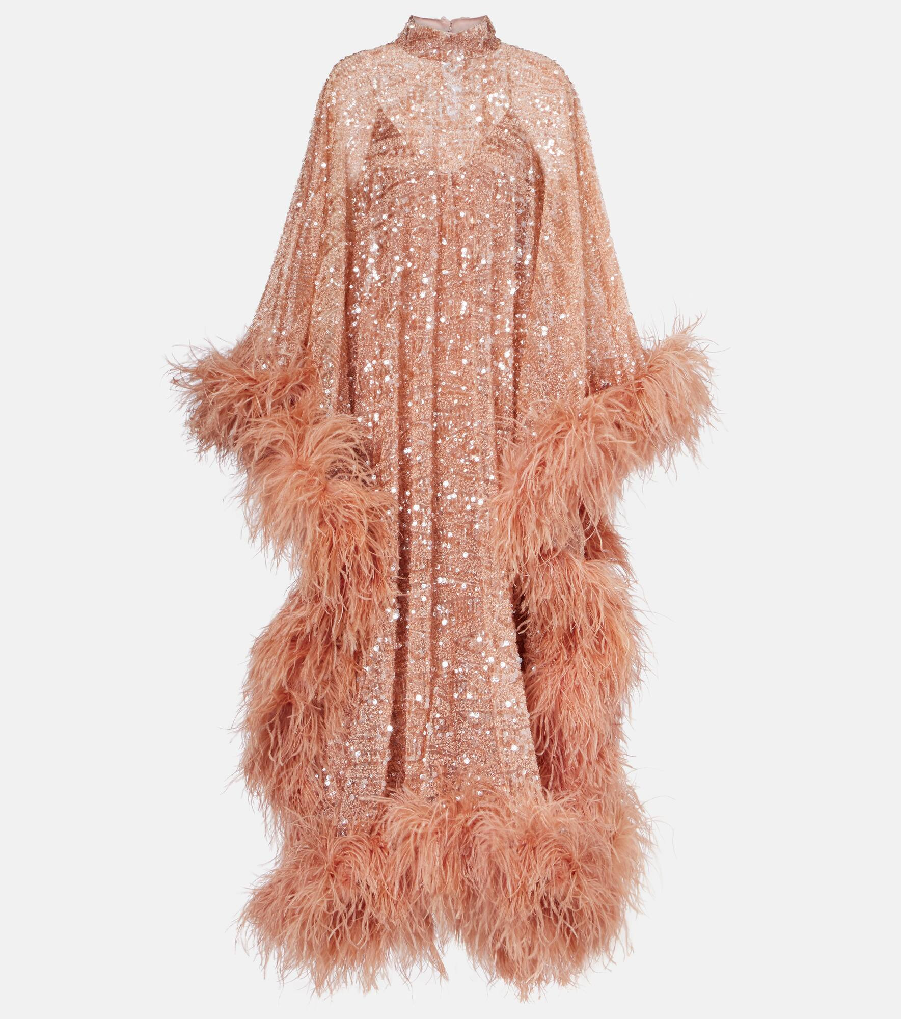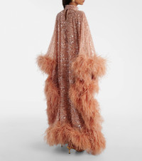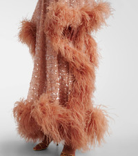 Casta Diva Sublime oversized feather-trimmed sequined tulle gown Blush