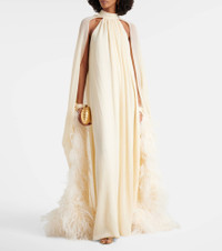 Feather-trimmed silk gown