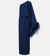 Product Details - Material: 78% acetate, 22% viscose - Care instructions: specialist clean - Made in Italy - Designer color name: Blue Navy - Trim: 100% feathers - Contains non-textile parts of animal origin - Closure: zipped side - Item number: P00987816 Size & Fit - True to size - Cinched waist - Non-stretchy fabric - slit length 61,0cm-24" - The model seen in the picture is 178cm-5'10" and wearing a size IT 40