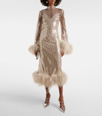 Gina Venti feather-trimmed midi dress