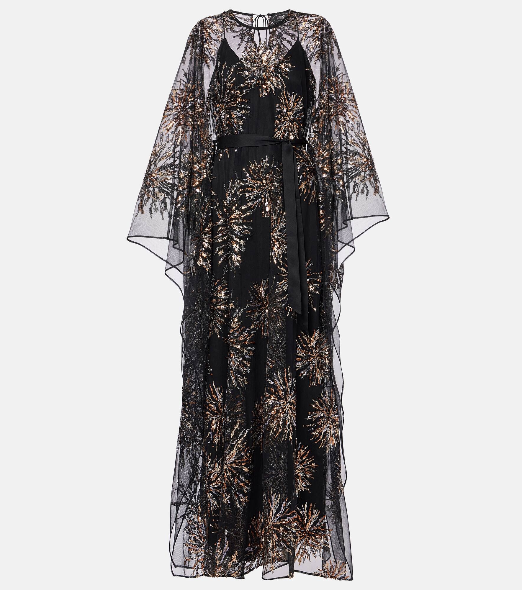 Gran Soleil belted sequin-embellished tulle kaftan