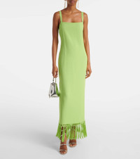 Product Details - Material: 78% acetate, 22% viscose - Care instructions: dry clean - Made in Italy - Designer color name: Apple - Closure: concealed zipper - Trim: 100% acetate - Item number: P01039985 Size & Fit - Fits large to size - we recommend trying one size smaller - Low back - Cinched waist - Non-stretchy fabric - slit length 62cm-24.5" - The model seen in the picture is 178cm-5'10" and wearing a size IT 38