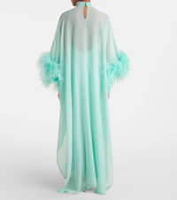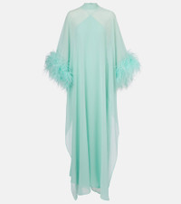 Penelope feather-trimmed silk kaftan