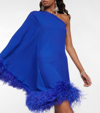 Trimmed with opulent ostrich feathers, Taller Marmo's Piccolo Ubud minidress echoes styles from the '70s. It's made in Italy from crêpe and has a one-shoulder silhouette. Product Details - Trim: 100% ostrich feathers - Material: 78% acetate, viscose - Made in Italy - Designer color name: Royal Blue - Closure: zipped side - Care instructions: dry clean - Item number: P00741574 Size & Fit - Fits large to size - we recommend trying one size smaller - Designed for a loose fit - Mid-weight material - The model seen in the picture is 178cm-5'10" and wearing a size IT 38 - Length of fringe 13cm-5"